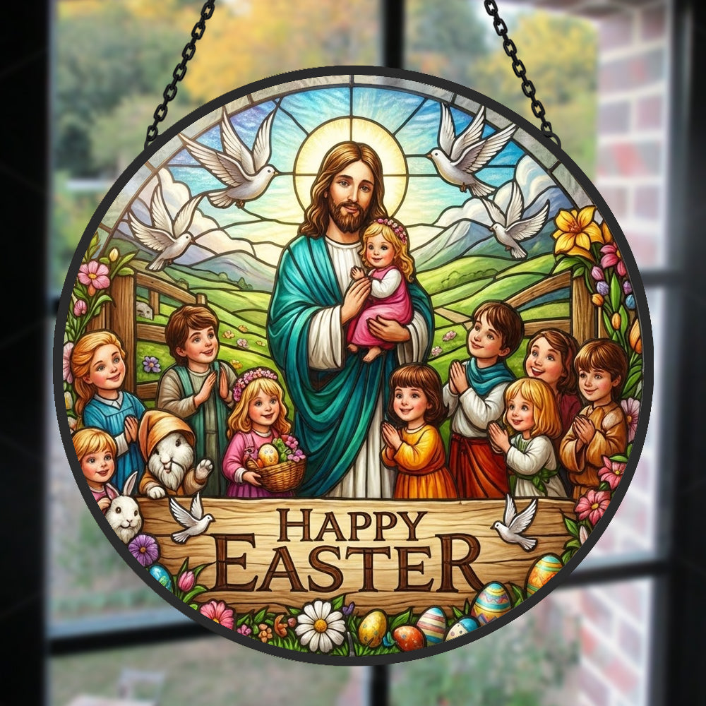 Frohe Ostern Buntglas Sonnenfänger - Fenster Hängedekoration