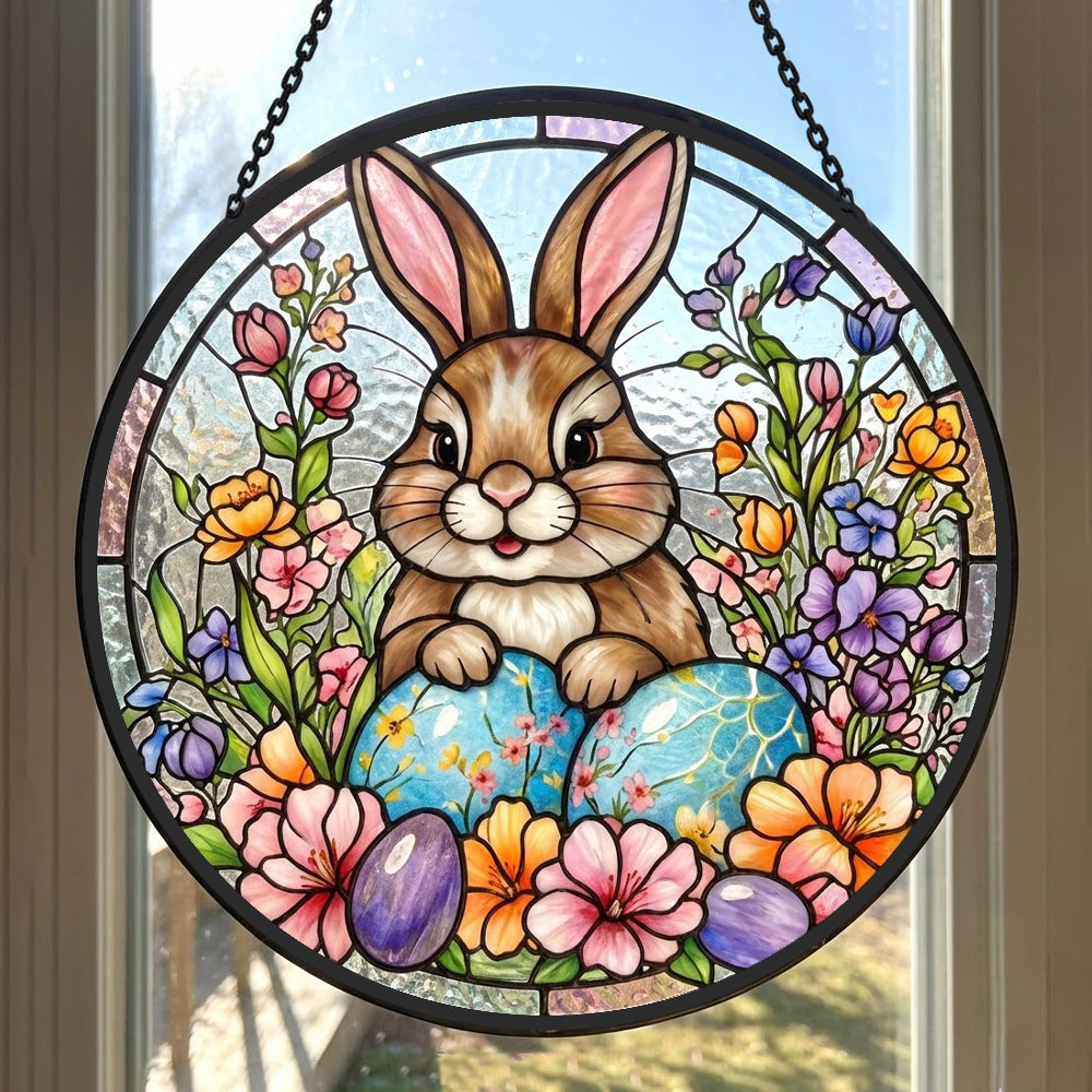 Osterhase und Blumen Buntglas Sonnenfänger - Fenster Hängedekoration