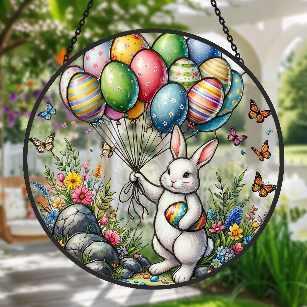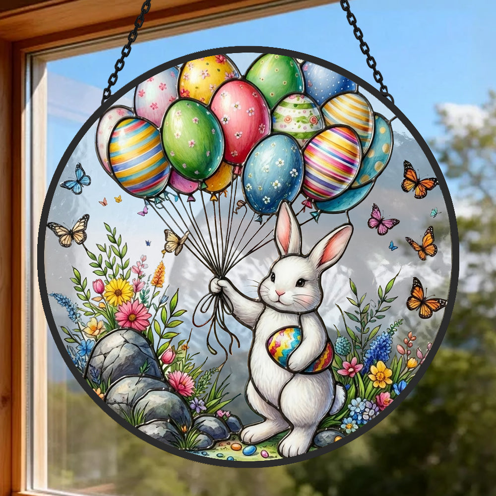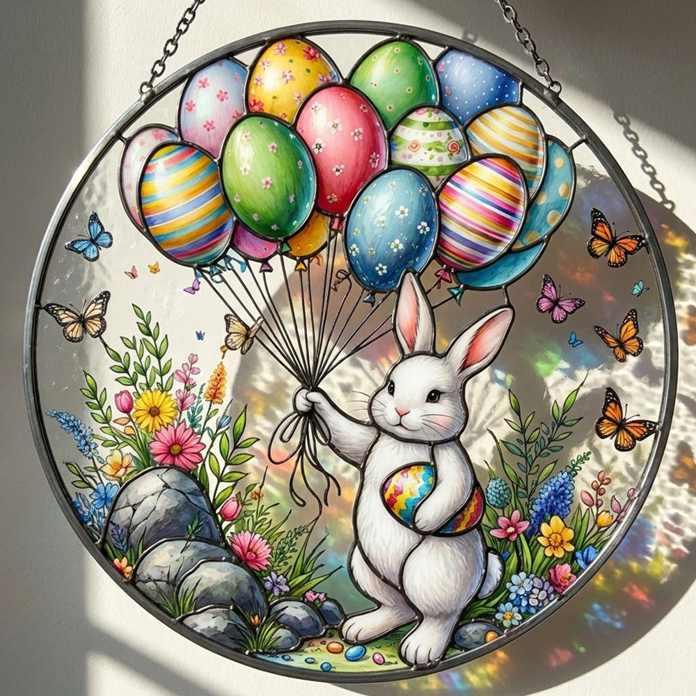 Osterhase und Luftballons Buntglas Sonnenfänger - Fenster Hängedekoration