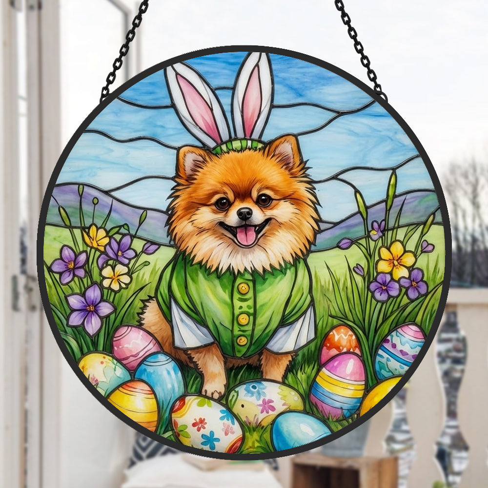 Zwergspitz Buntglas Sonnenfänger - Fenster Hängedekoration