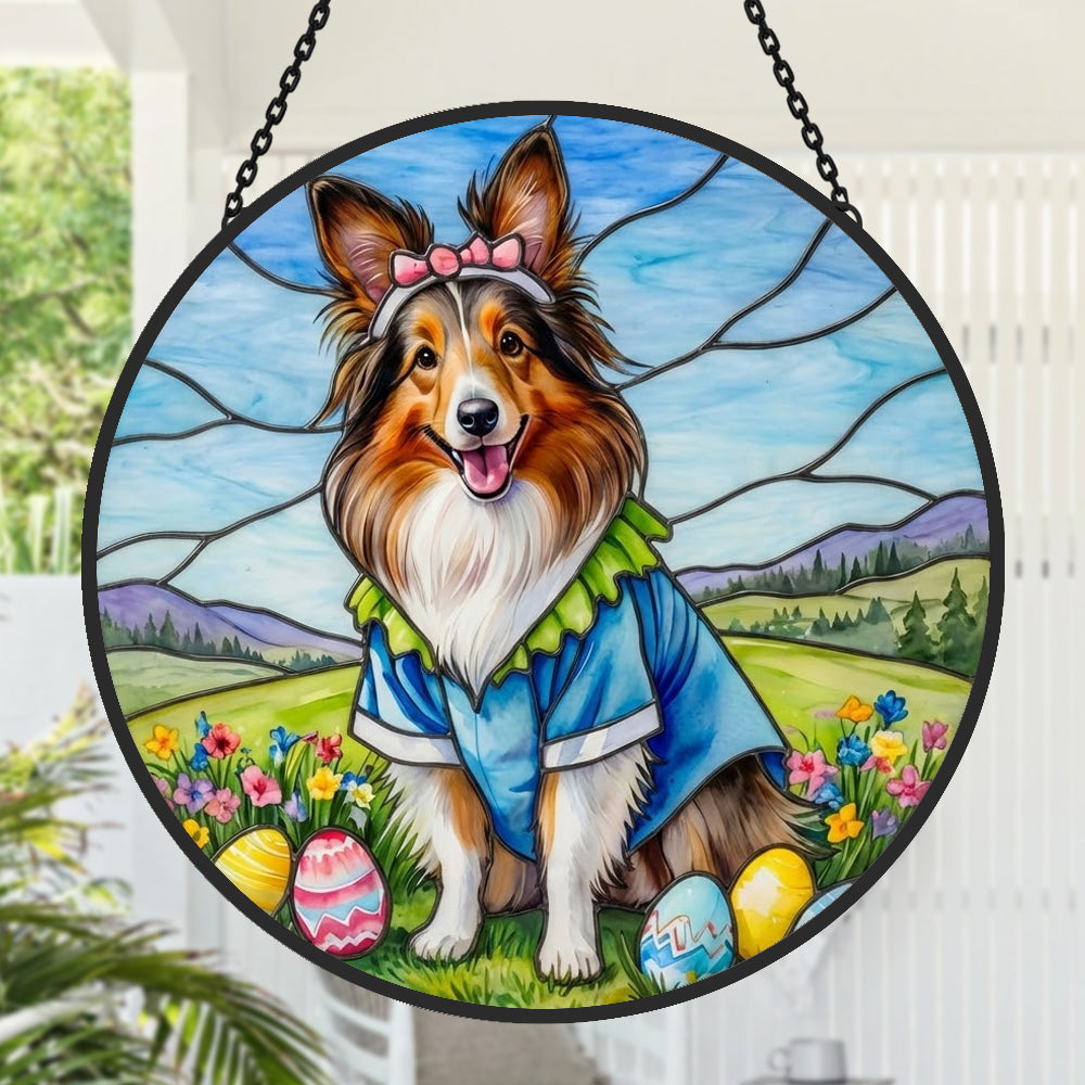 Shetland Schäferhund Buntglas Sonnenfänger - Fenster Hängedekoration