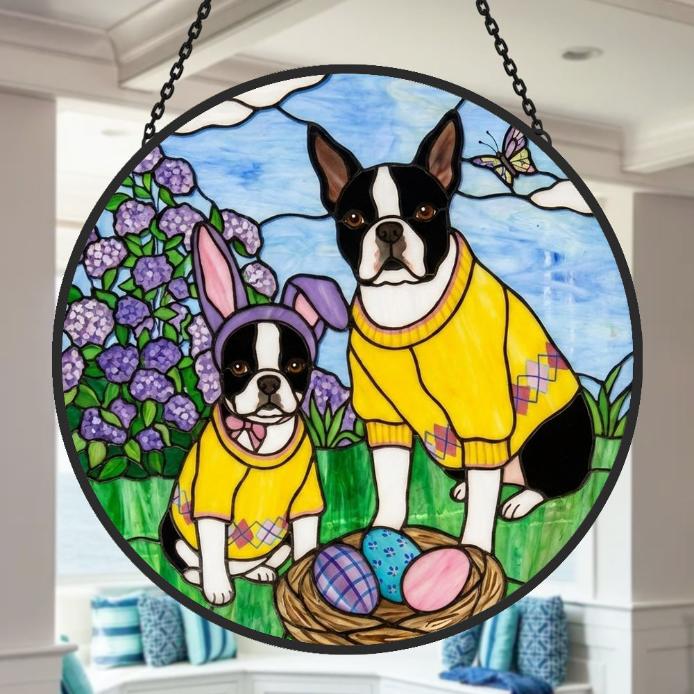Boston Terrier Buntglas Sonnenfänger - Fenster Hängedekoration