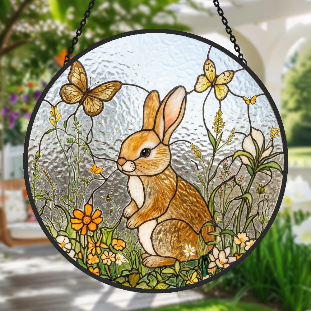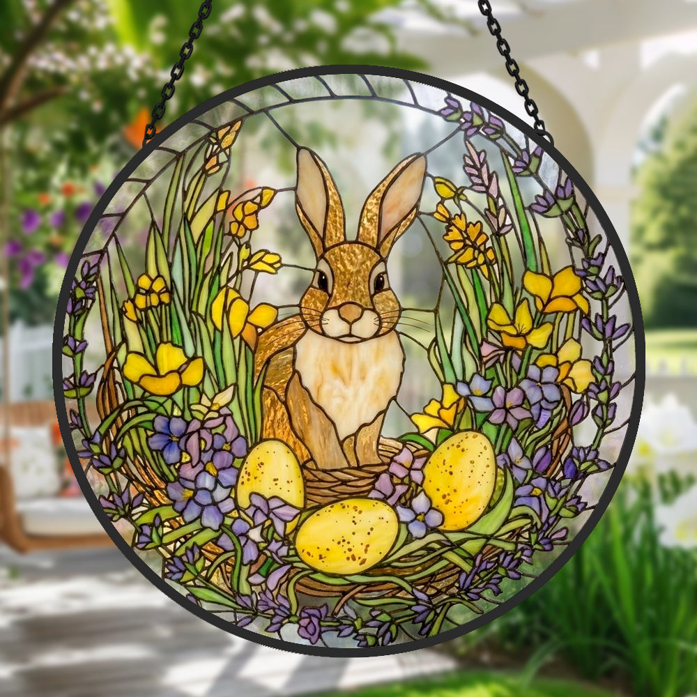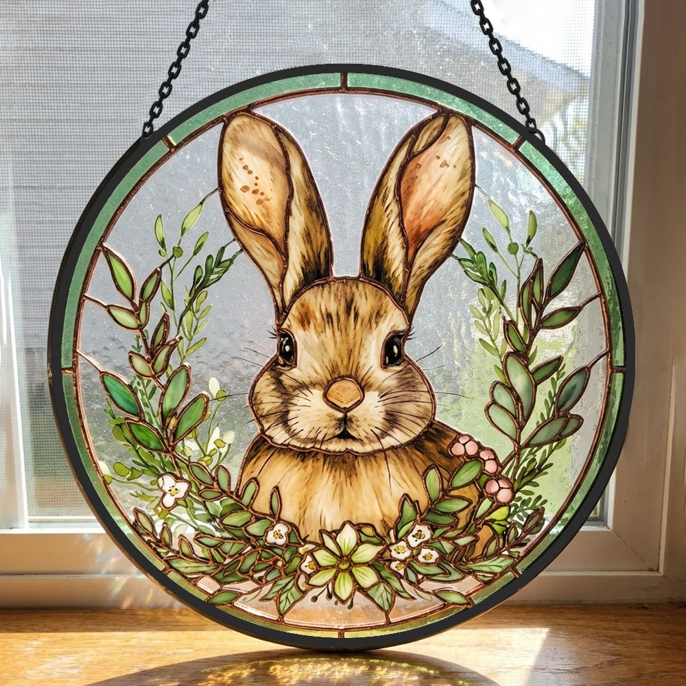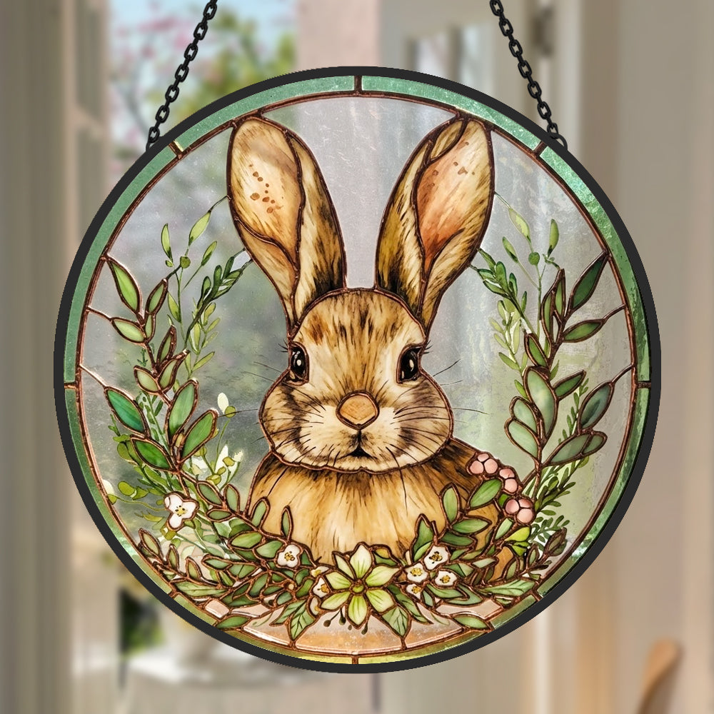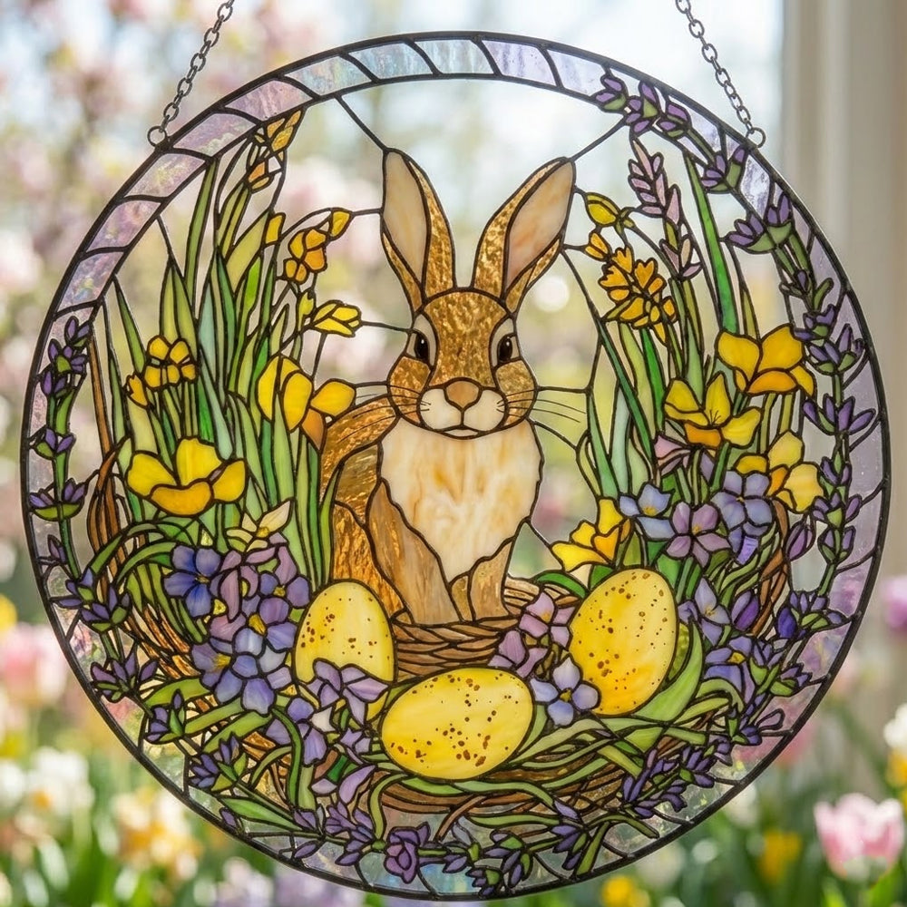 Osterhase und Blumen Buntglas Sonnenfänger - Fenster Hängedekoration