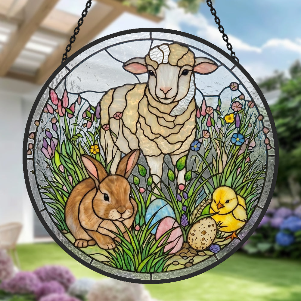 Osterhase und Schafe Buntglas Sonnenfänger - Fenster Hängedekoration