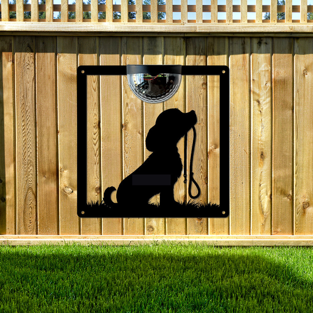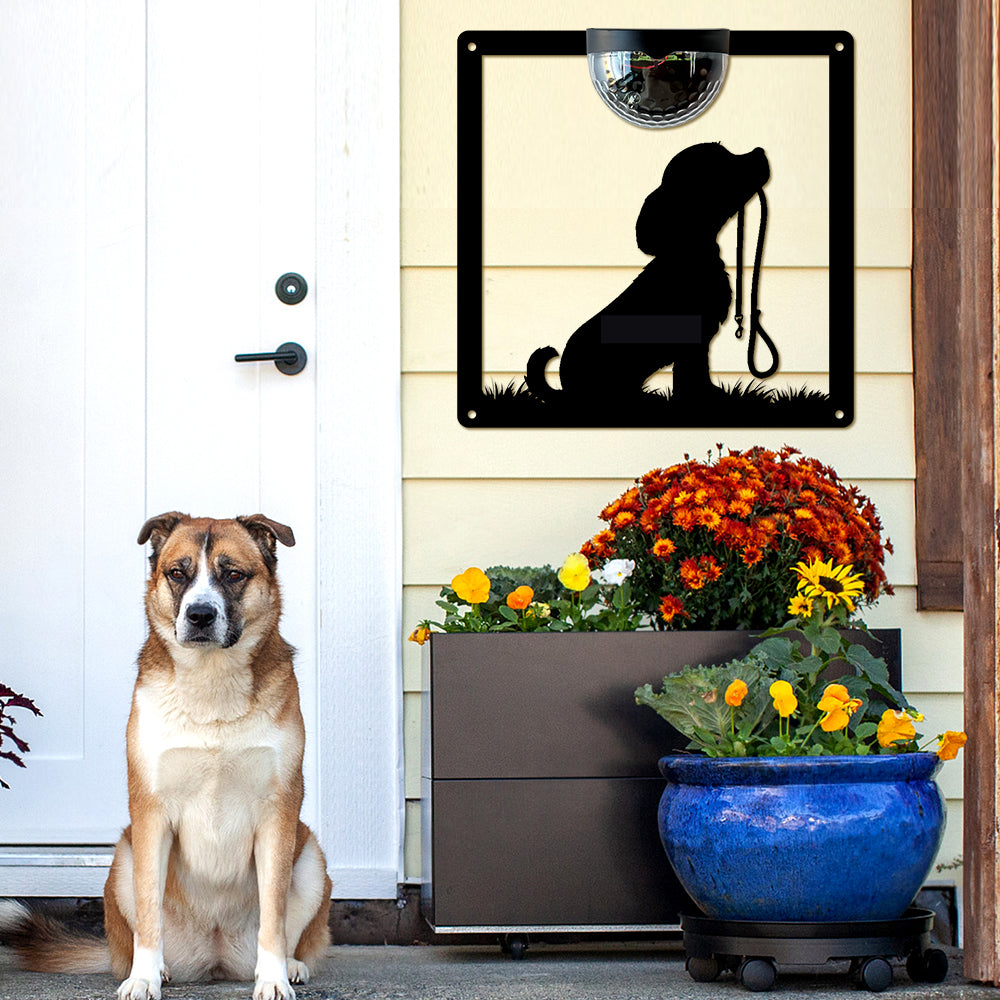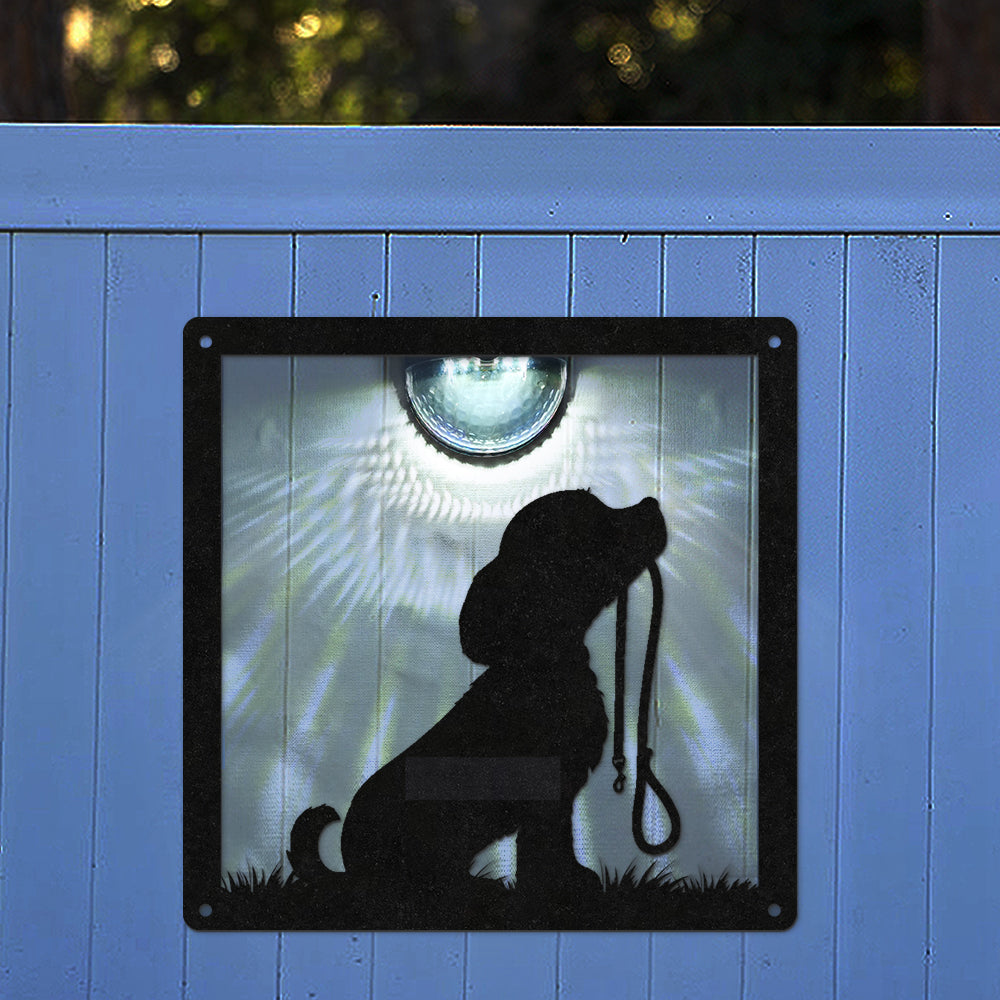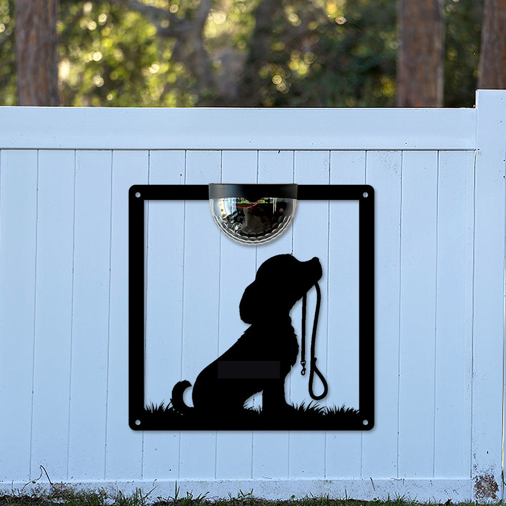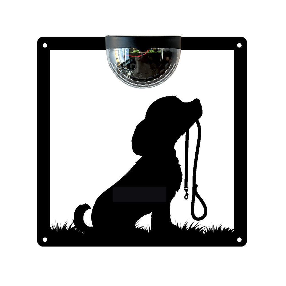 Charmanter niedlicher Hund Metall Wandkunst mit Solarlicht Solar Wandtafeln