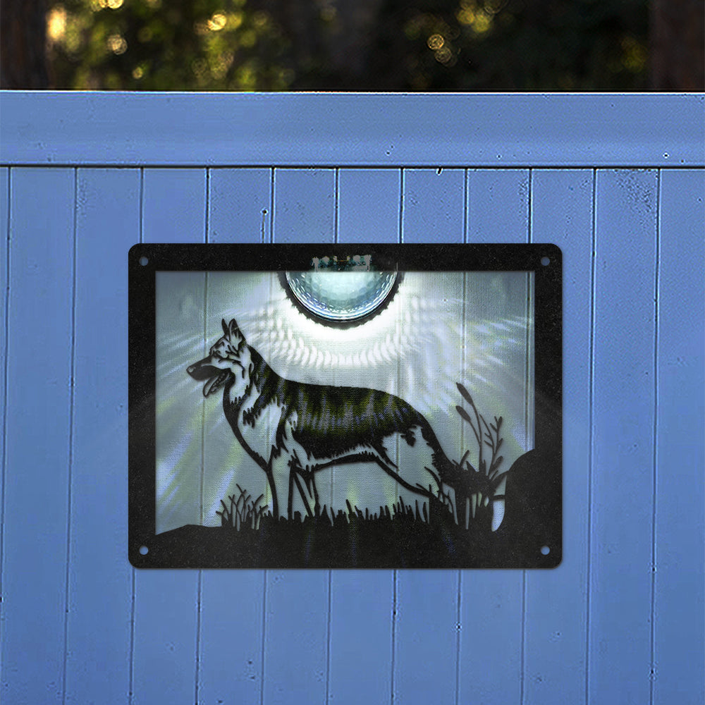 Deutscher Schäferhund Metall Wandkunst mit Solarlicht Solar Wandtafeln
