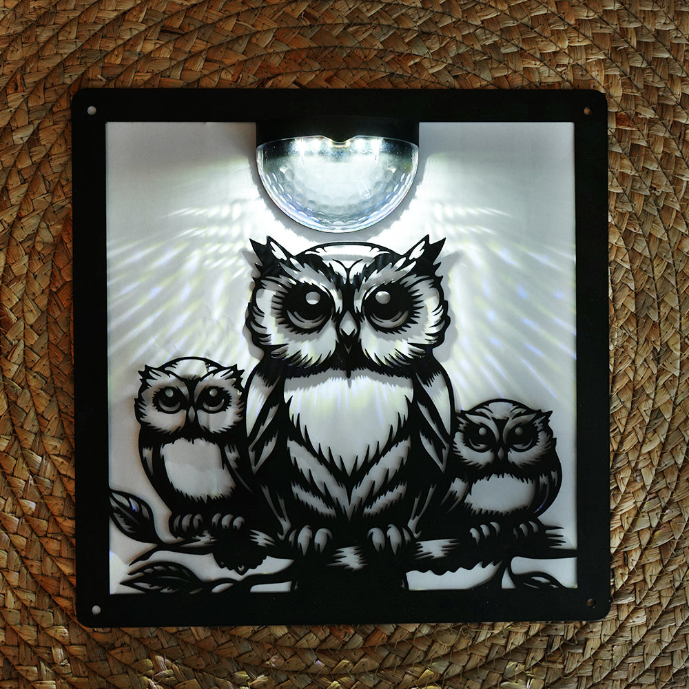 Eule Metall Wandkunst mit Solarlicht Solar Wandtafeln