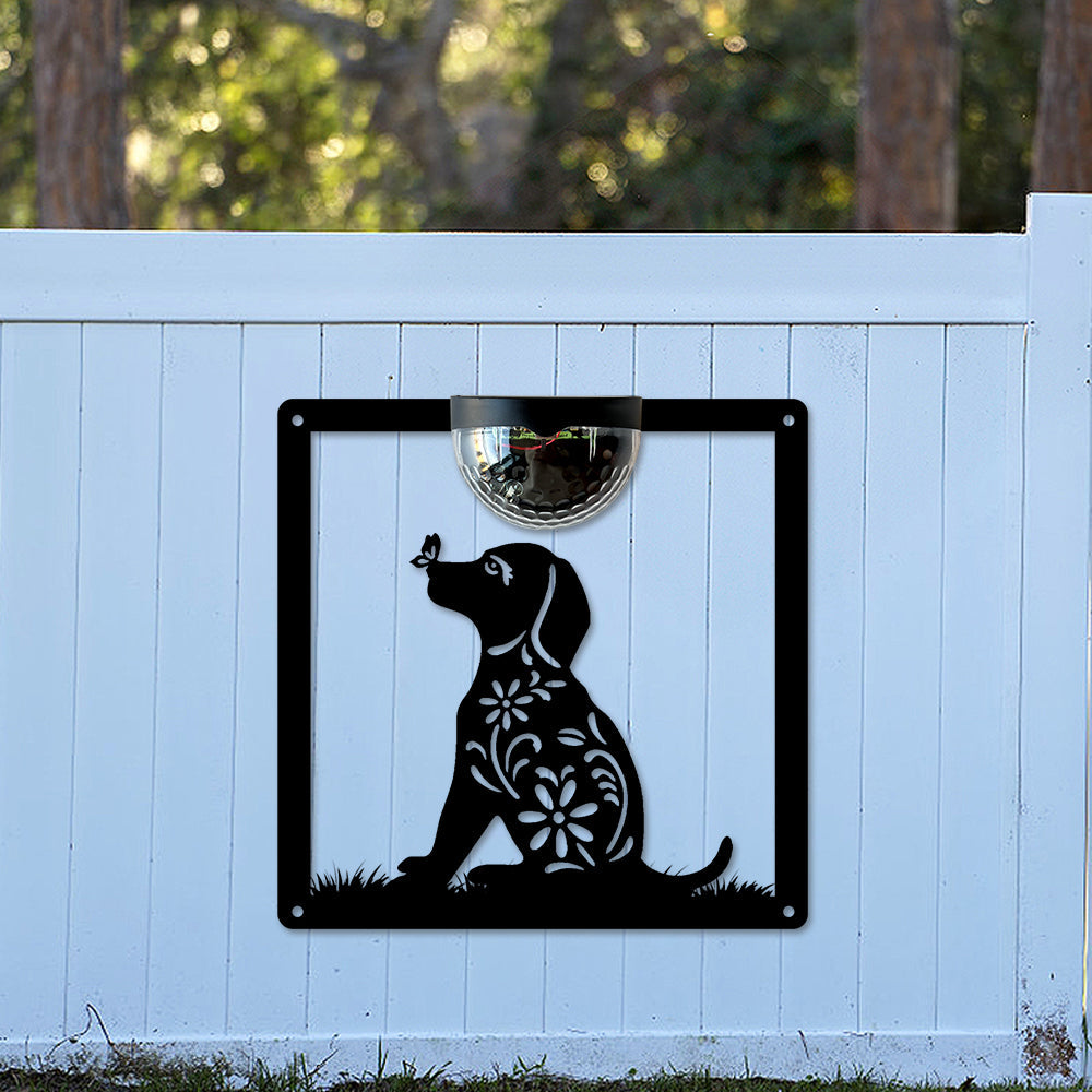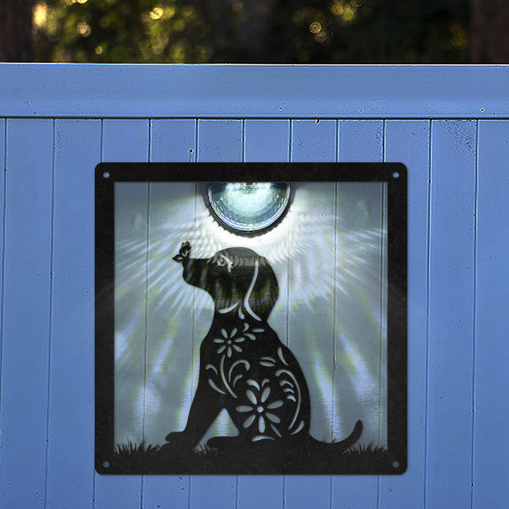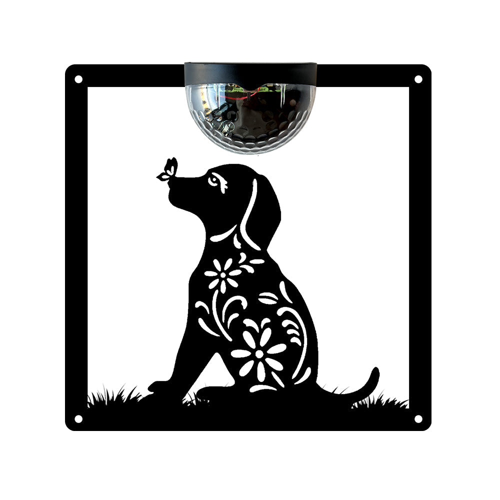 Hund mit Blume Metall Wandkunst mit Solarlicht Solar Wandtafeln