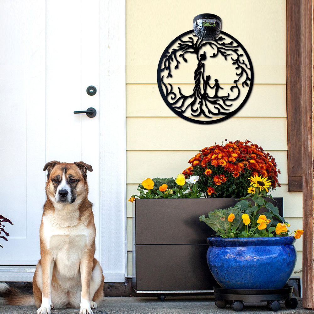 Mutter mit Kindern Metall Wandkunst mit Solarlicht Solar Wandtafeln
