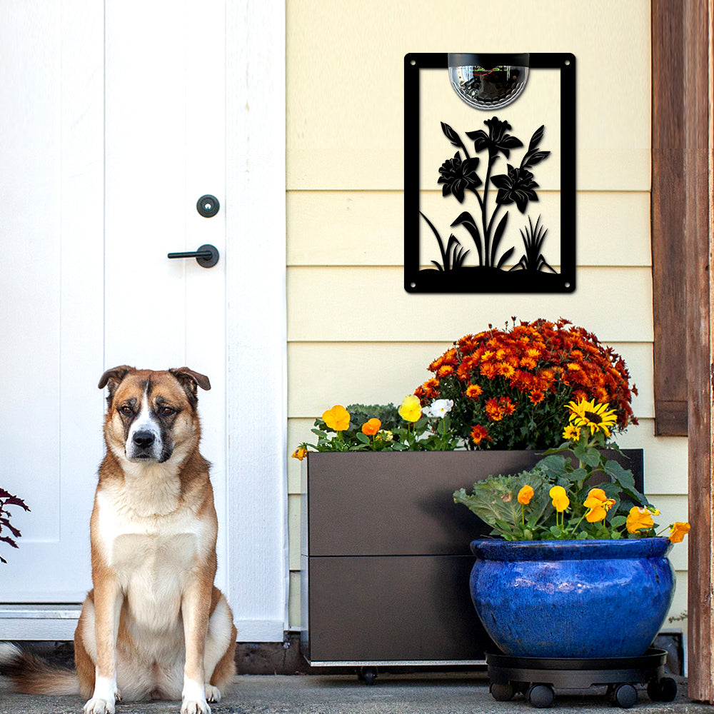 Erhellen Sie Ihren Garten oder Eingangsbereich mit dieser bezaubernden dekorativen Solarlampe aus Metall! Dieses Stück ist nicht nur eine praktische Lichtquelle, sondern dient auch als charmanter Wandakzent während des Tages!
