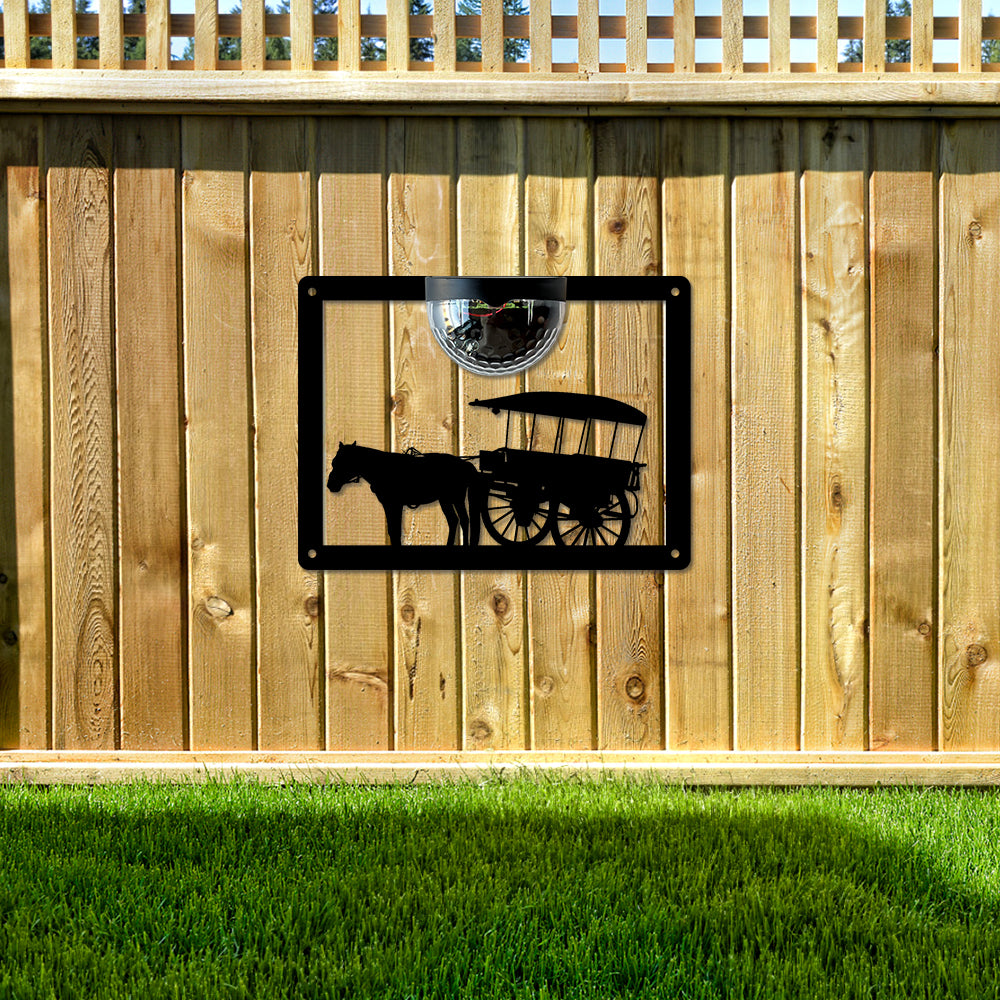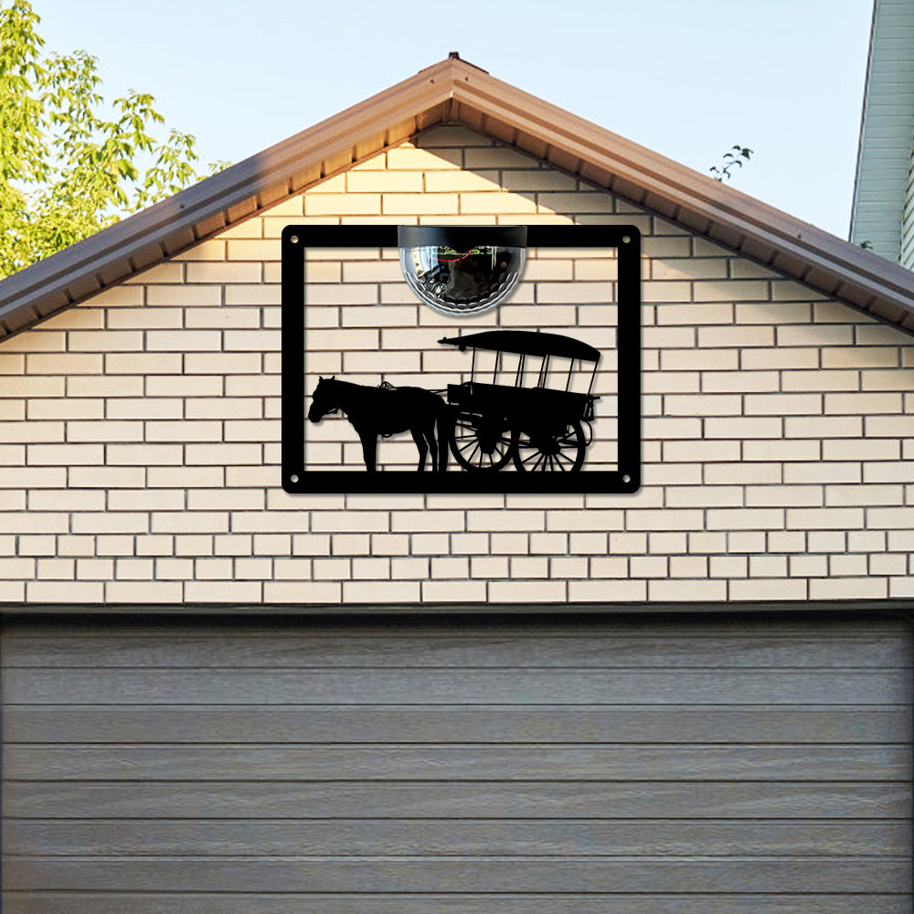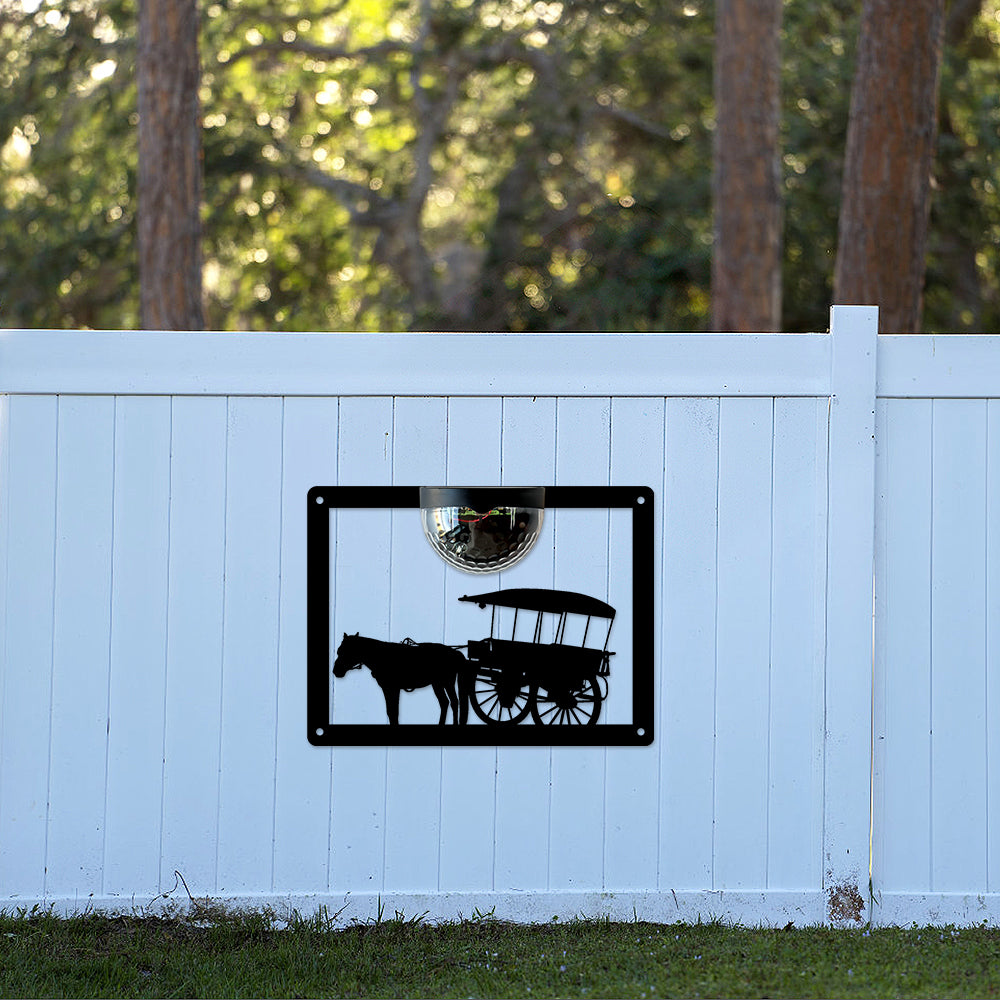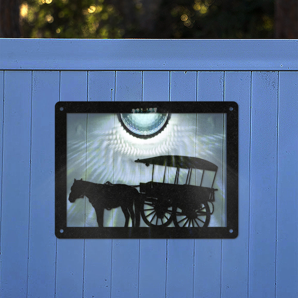 Pferdewagen Metall Wandkunst mit Solarlicht Solar Wandtafeln