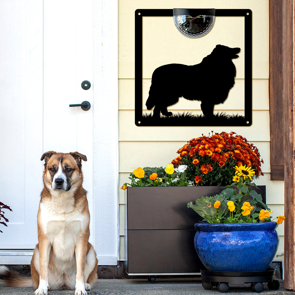 Rough Collie Metall Wandkunst mit Solarlicht Solar Wandtafeln