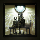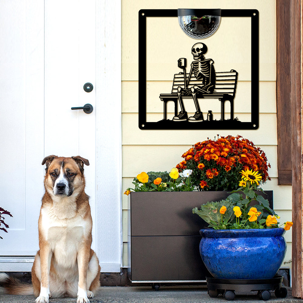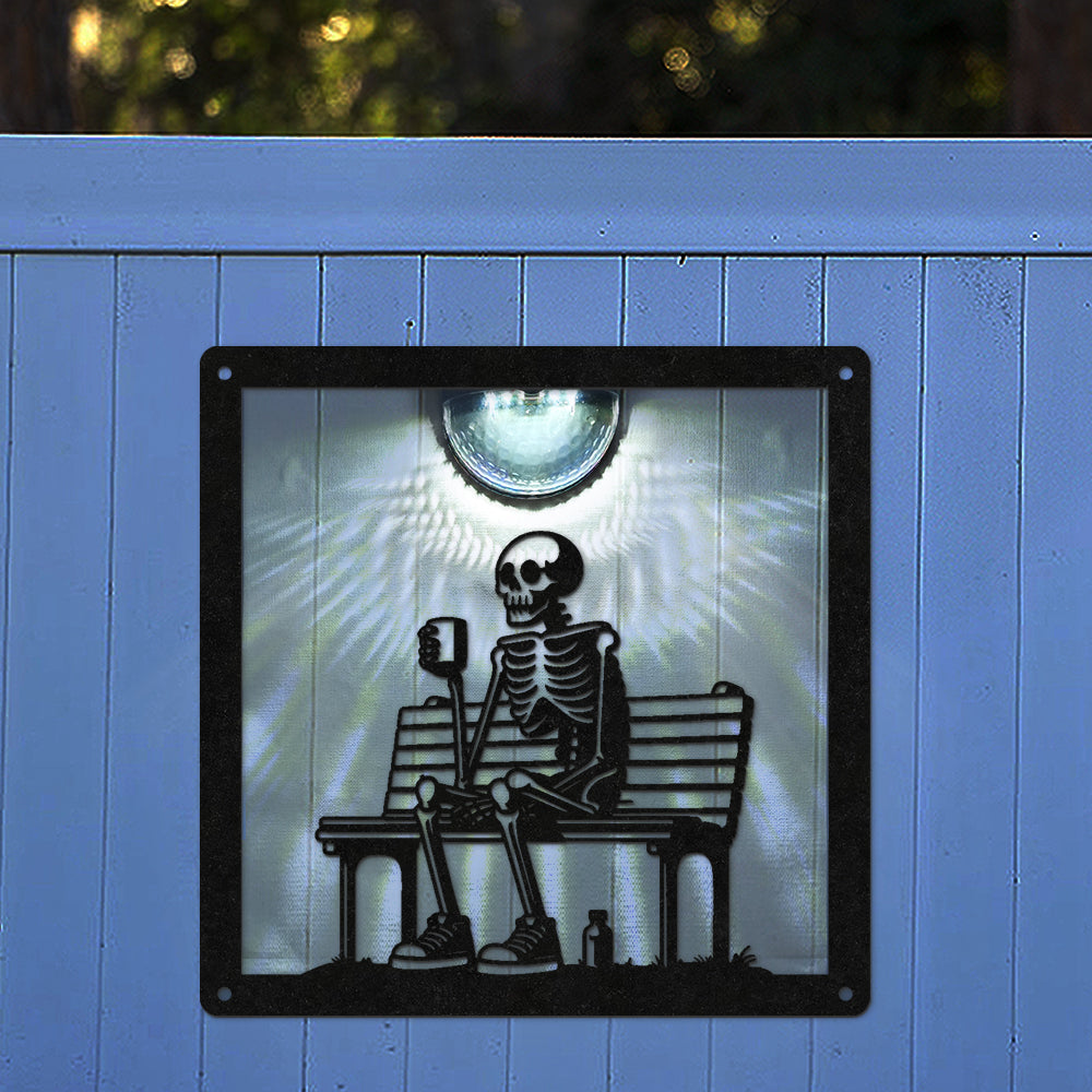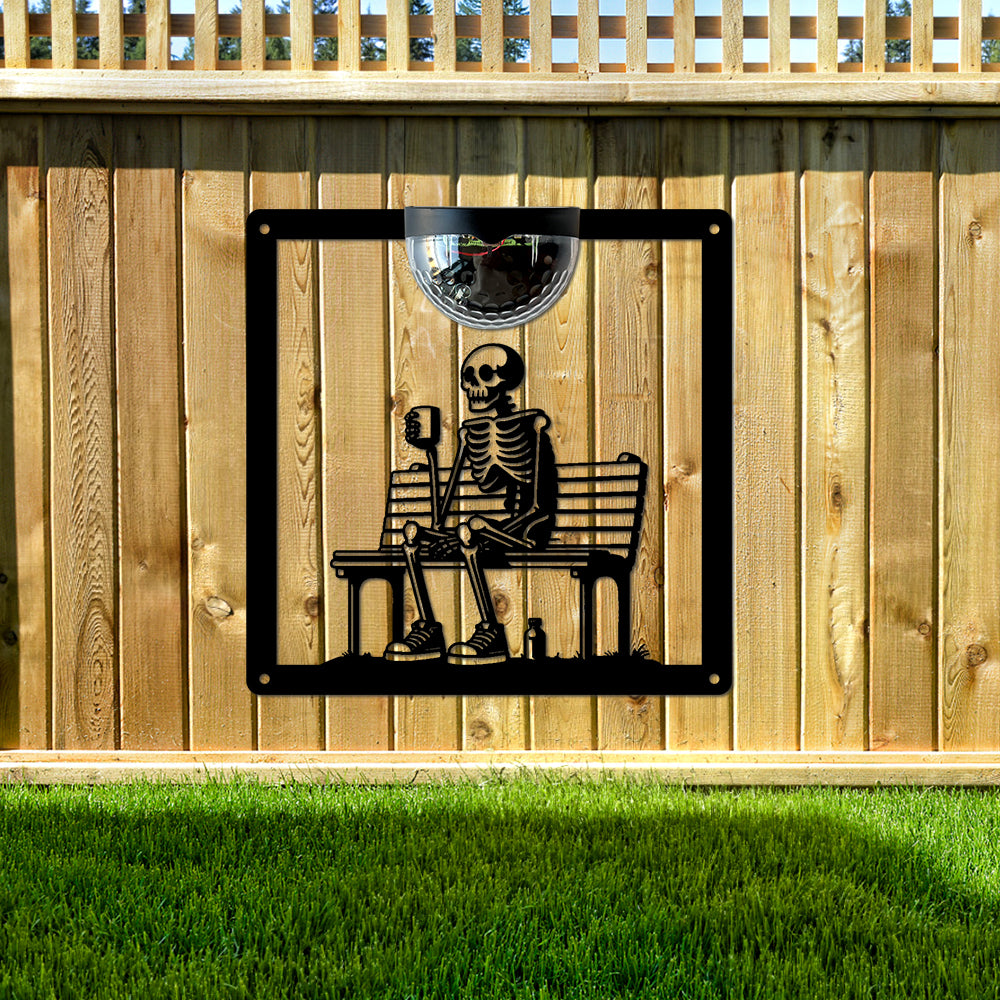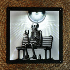 Skelett auf Bank Metall Wandkunst mit Solarlicht Solar Wandtafeln