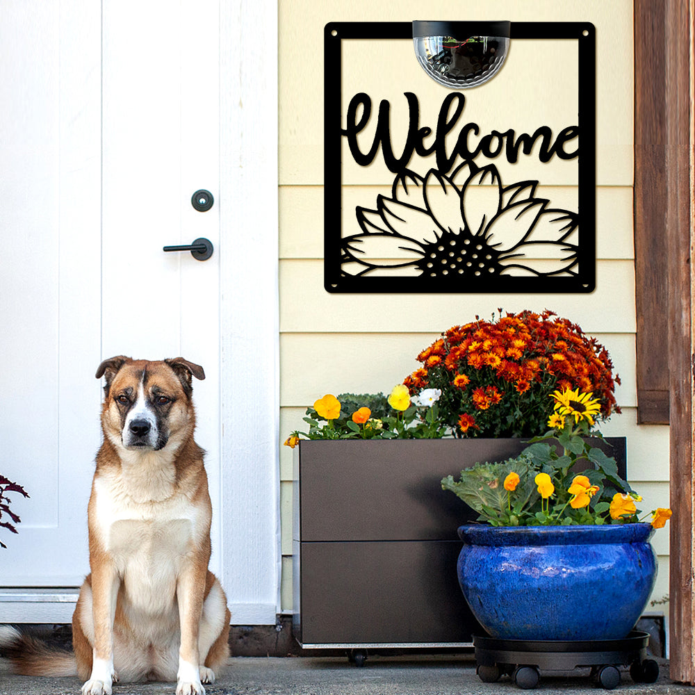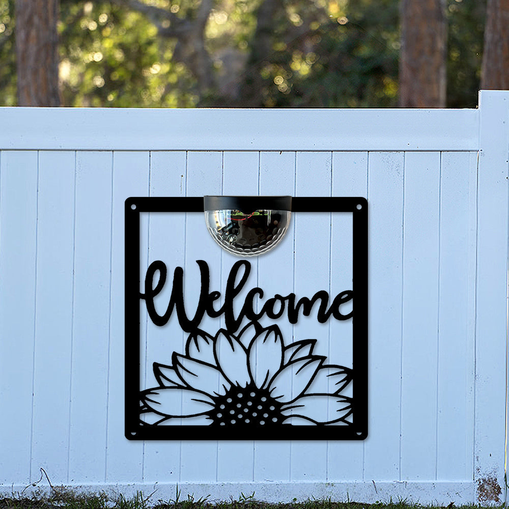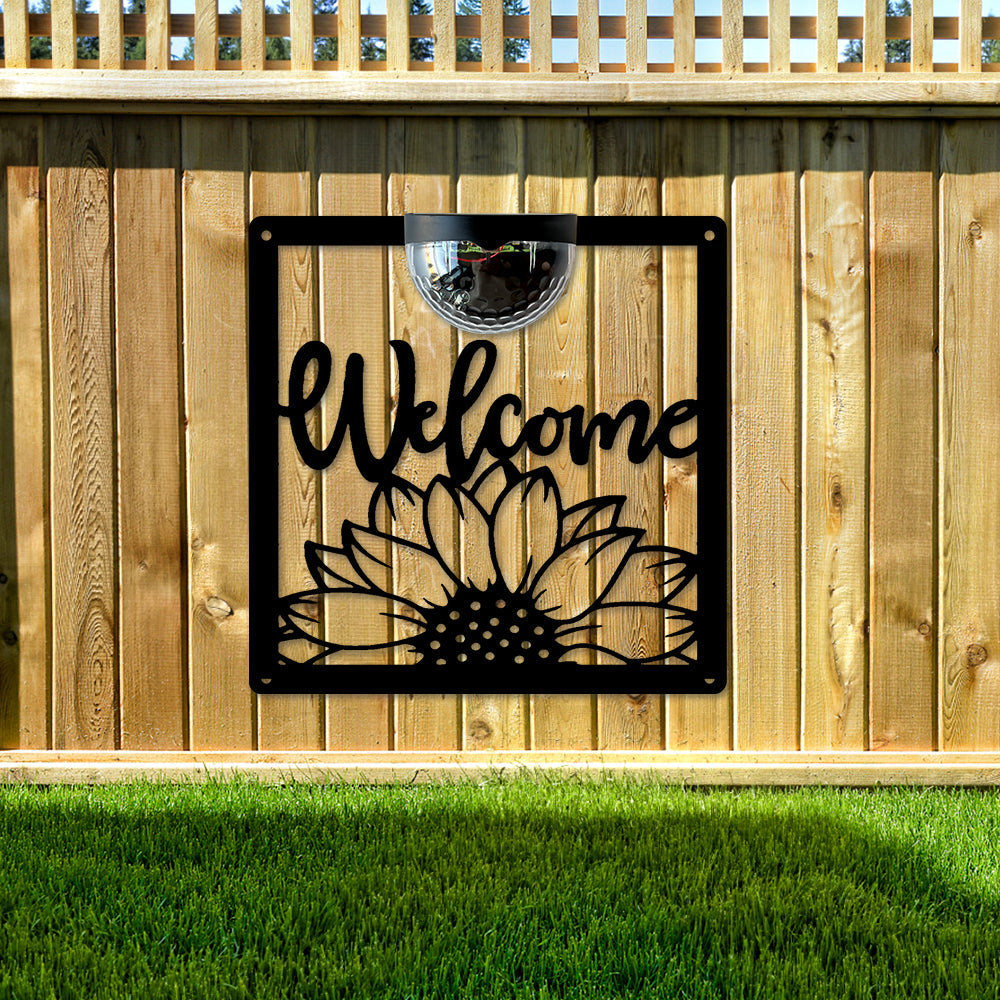 Sonnenblume Willkommen Metall Wandkunst mit Solarlicht Solar Wandtafeln