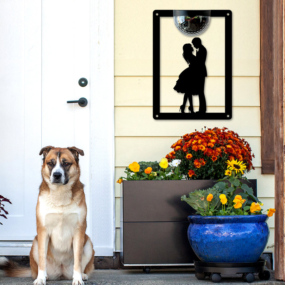 Süßes Paar Metall Wandkunst mit Solarlicht Solar Wandtafeln