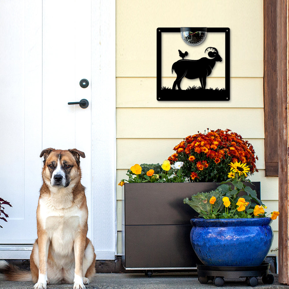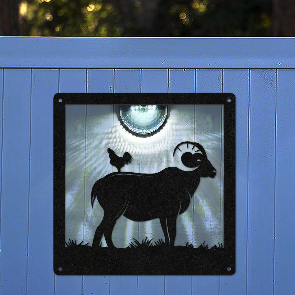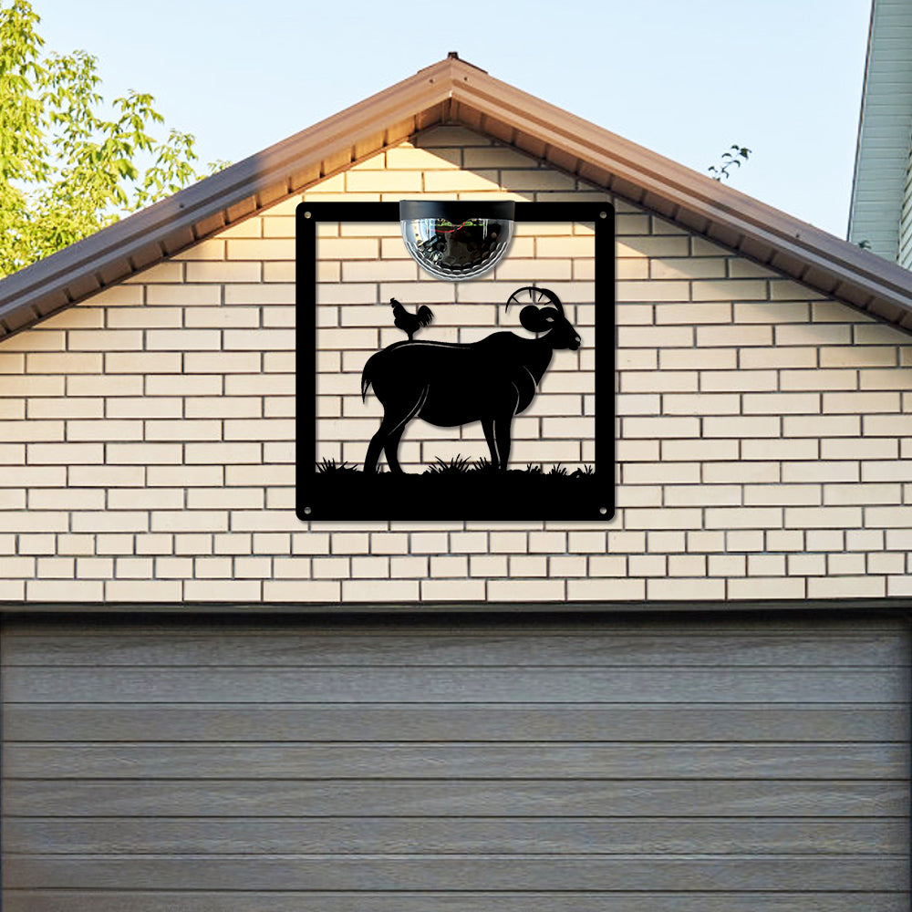 Ziege und Huhn Metall Wandkunst mit Solarlicht Solar Wandtafeln
