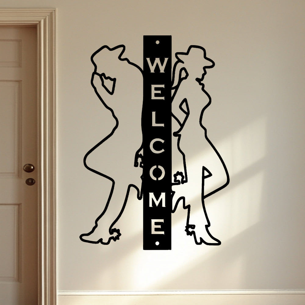 Cowboy und Cowgirl Willkommensschild aus Metall Wandkunst Dekoration