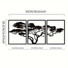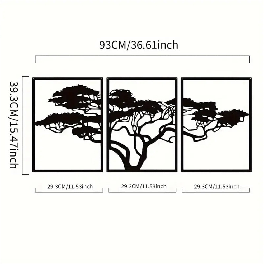 3 Stück Lebensbaum Schwarz Metall Wanddekoration