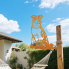 Hochwertige Metallkunst mit Tiersilhouette, die Ihrem Garten ganz einfach eine fröhliche Atmosphäre verleiht.