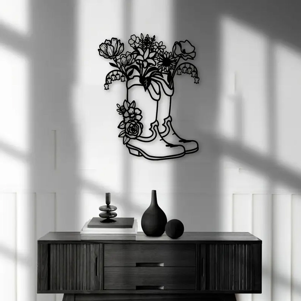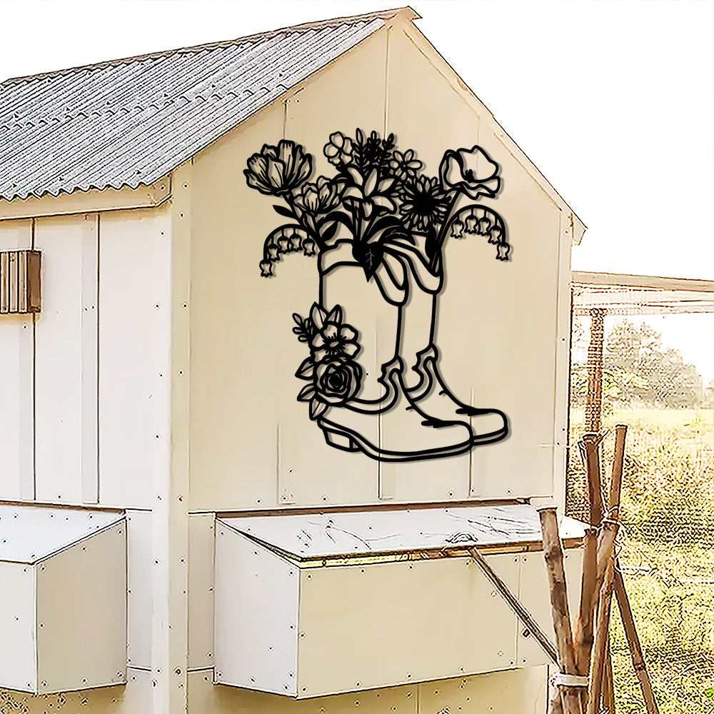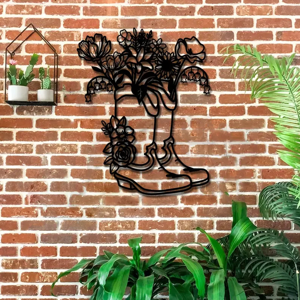 Cowboystiefel Blumen für Frauen Metallschild Wanddekoration