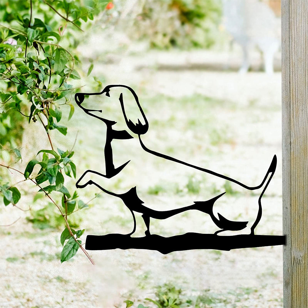 Hochwertige Metallkunst mit Tiersilhouette, die Ihrem Garten ganz einfach eine fröhliche Atmosphäre verleiht.