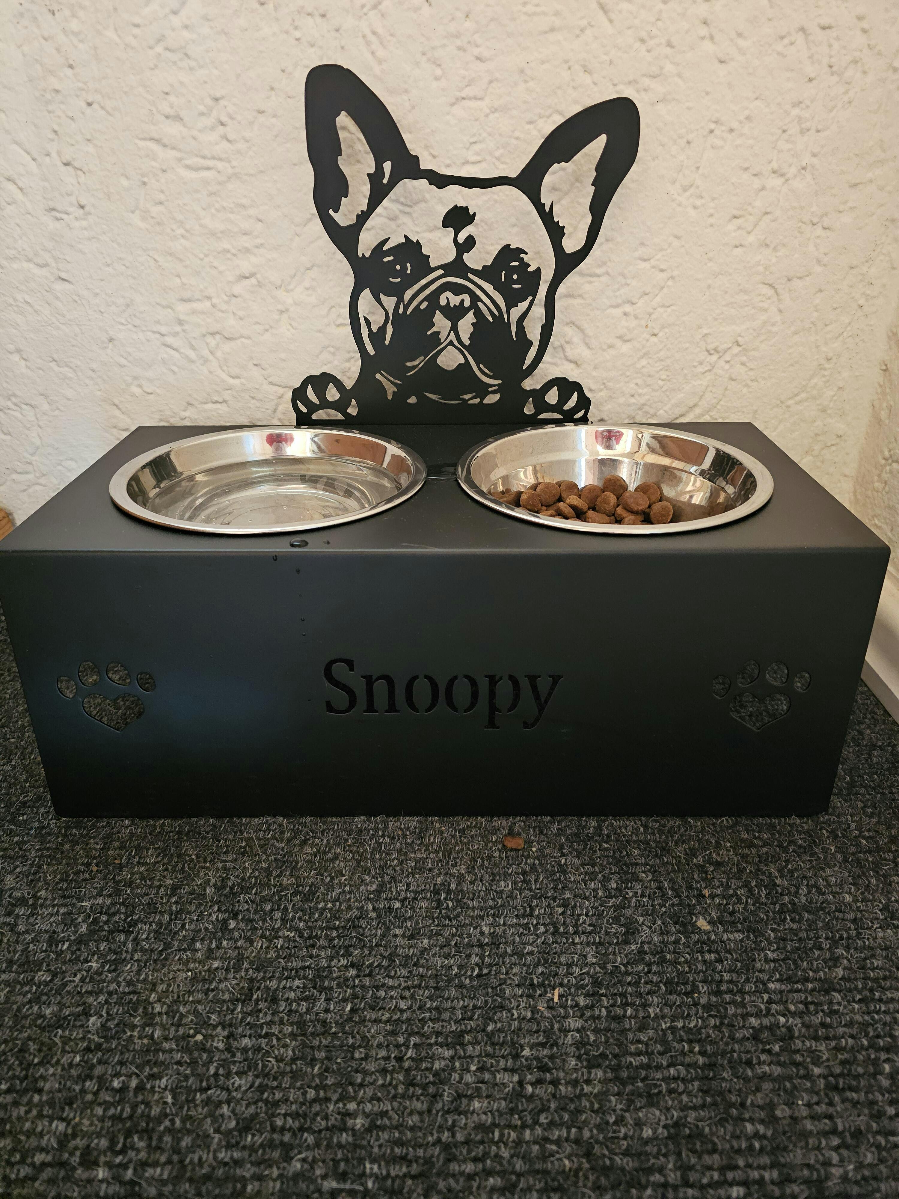 Dieser Futterhalter macht richtig Spaß! Du kannst die Rasse deines Haustiers auswählen und seinen Namen individuell gestalten!