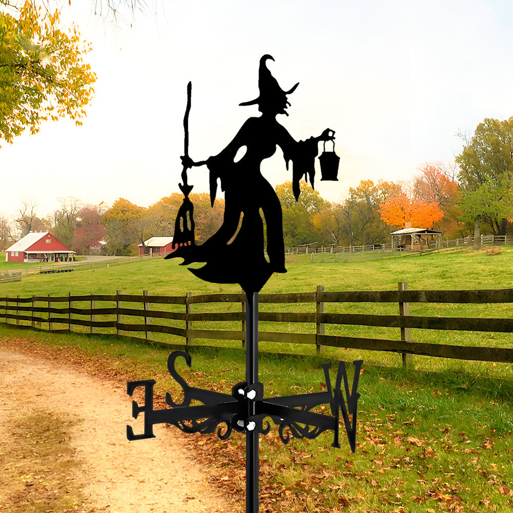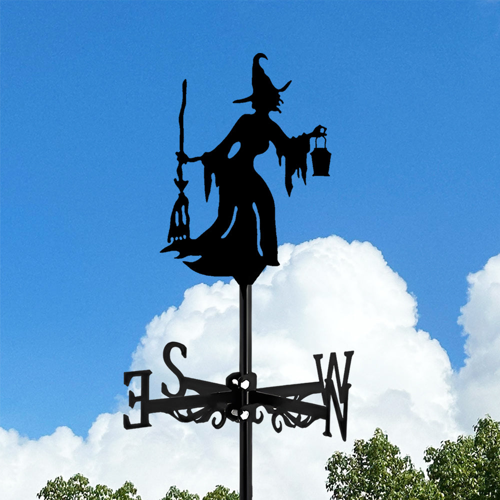 Halloween Hexe mit Besen Edelstahl Wetterfahne