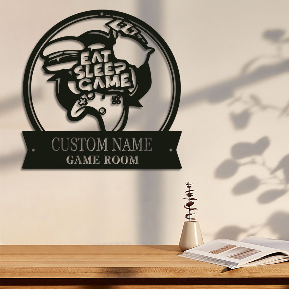 Individuelles Essen Schlafen Spiel Metallschild Wandkunst Dekoration