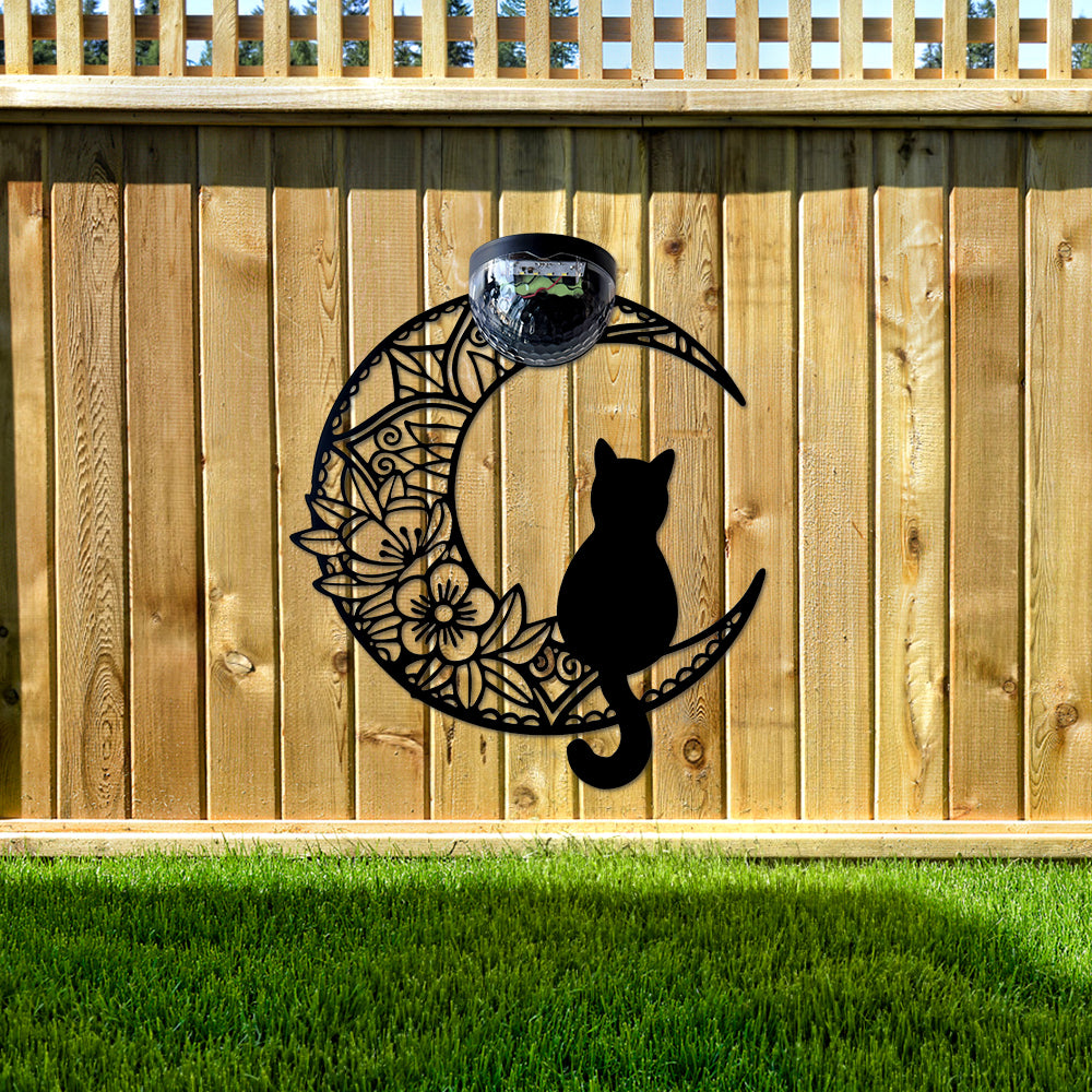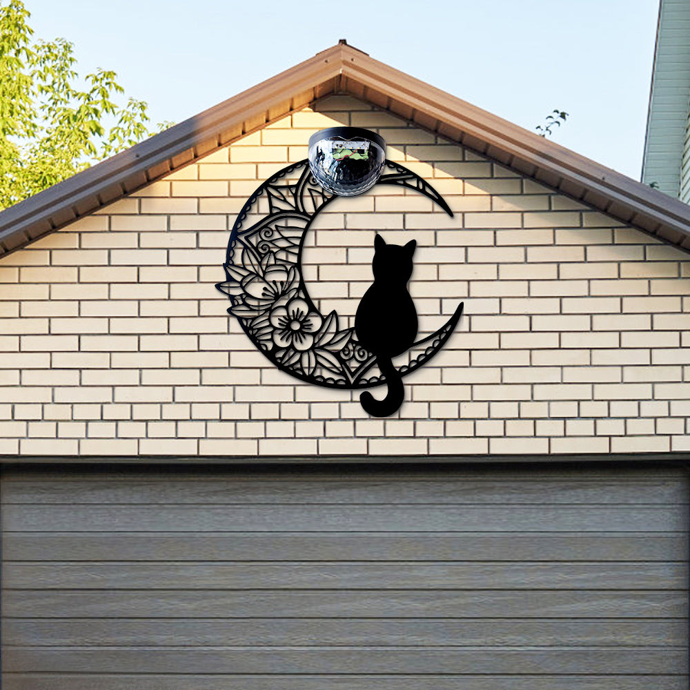 Katze und Blume Metall Wandkunst mit Solarlicht Solar Wandtafeln