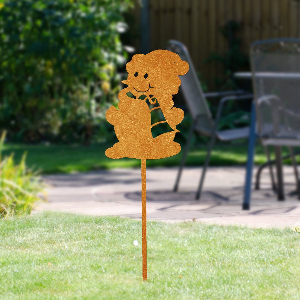 Hochwertige Metallkunst mit Tiersilhouette, die Ihrem Garten ganz einfach eine fröhliche Atmosphäre verleiht.