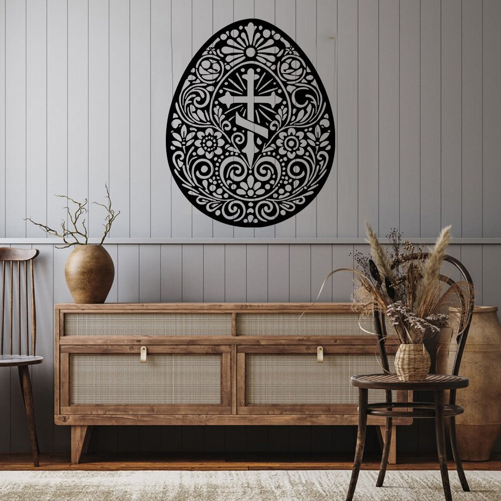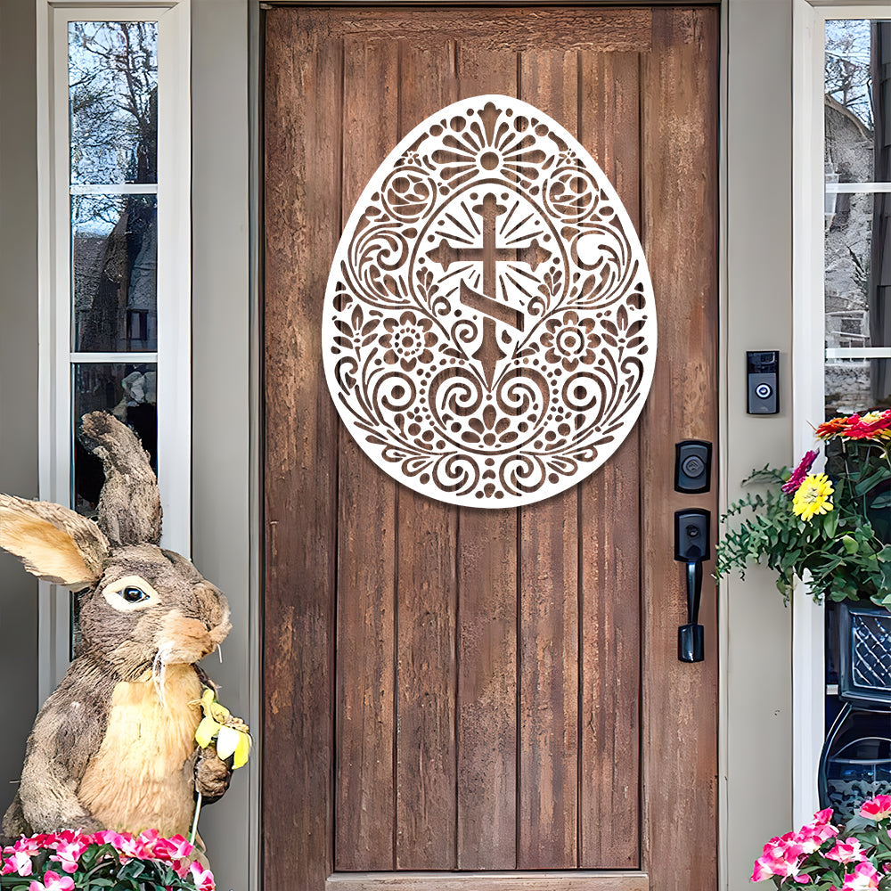 Ostern Kreuz im Ei Schild Metall Wanddekoration