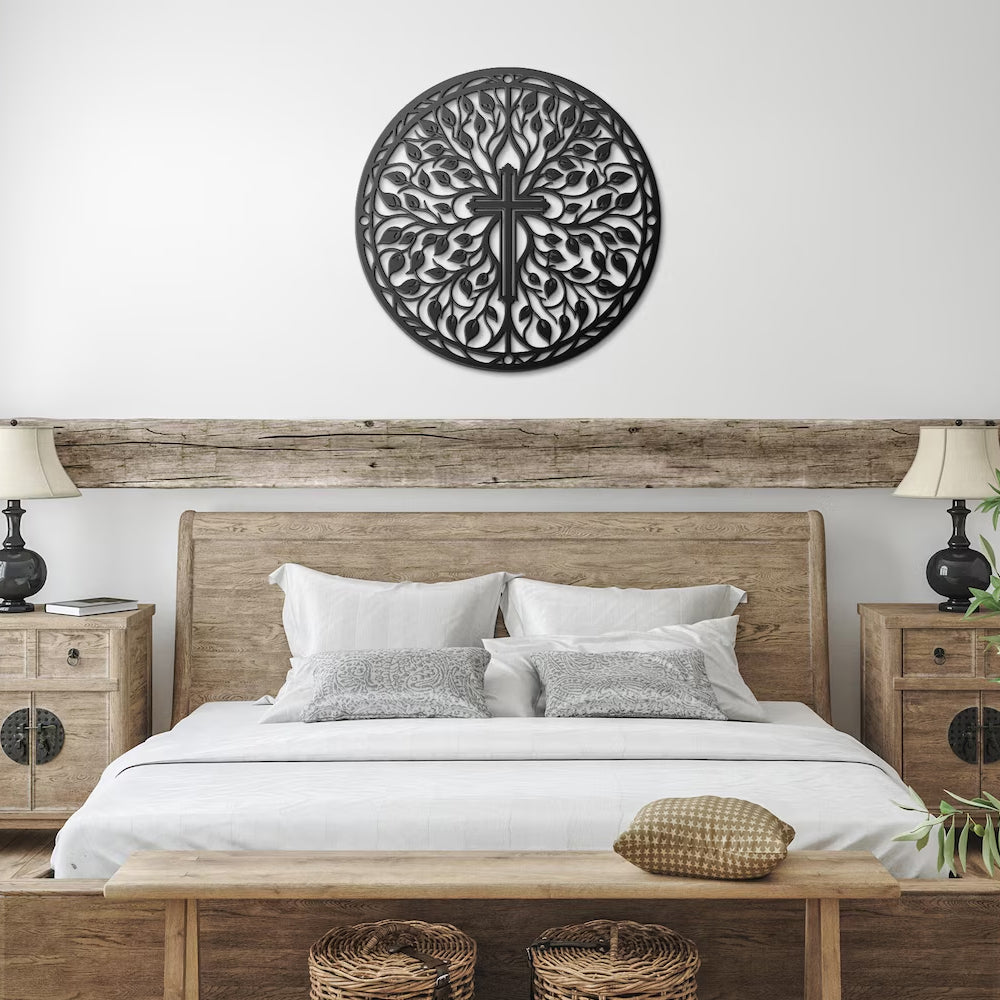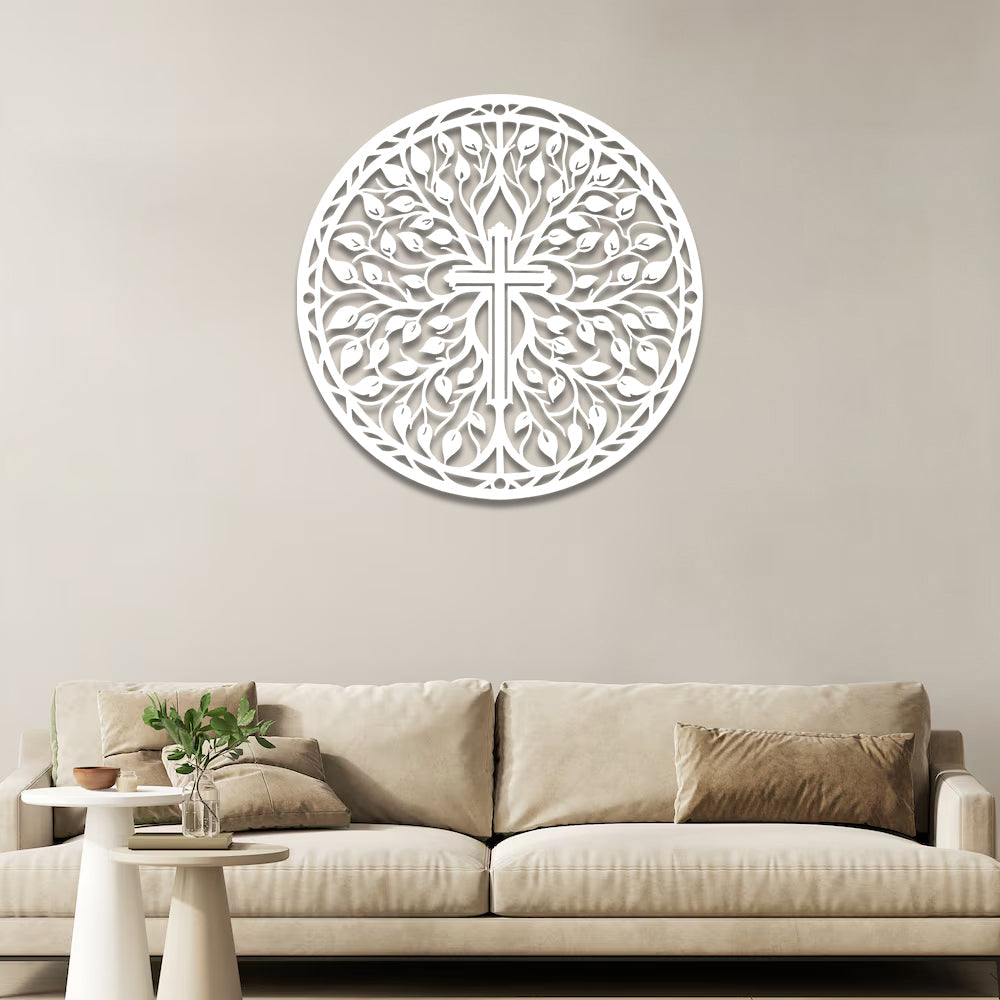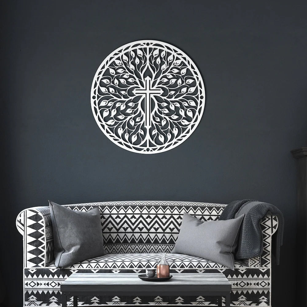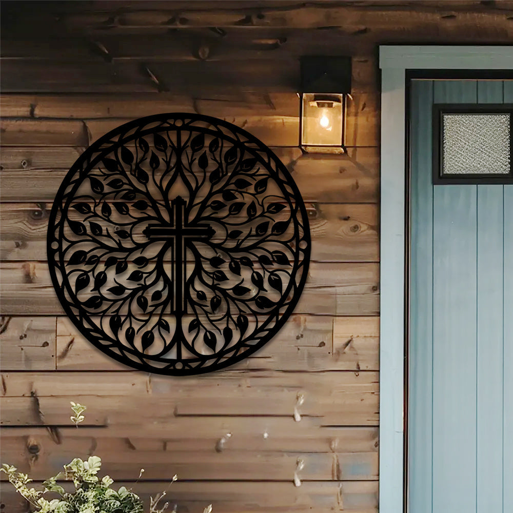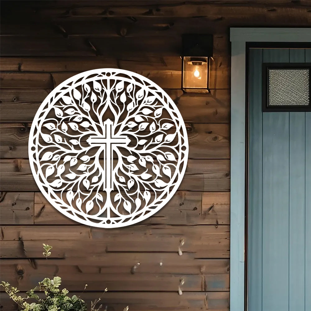 Ostern Kreuz mit Zweigen und Blättern Schild Metall Wanddekoration