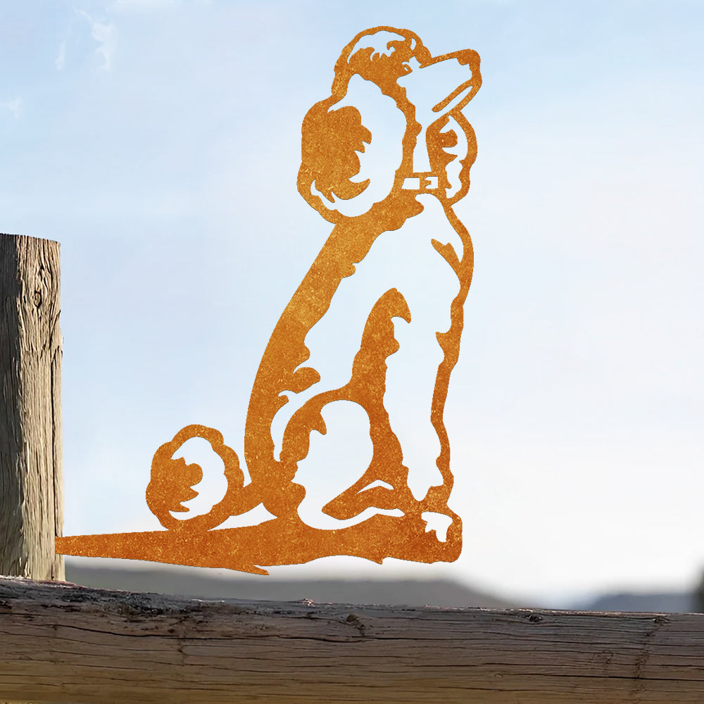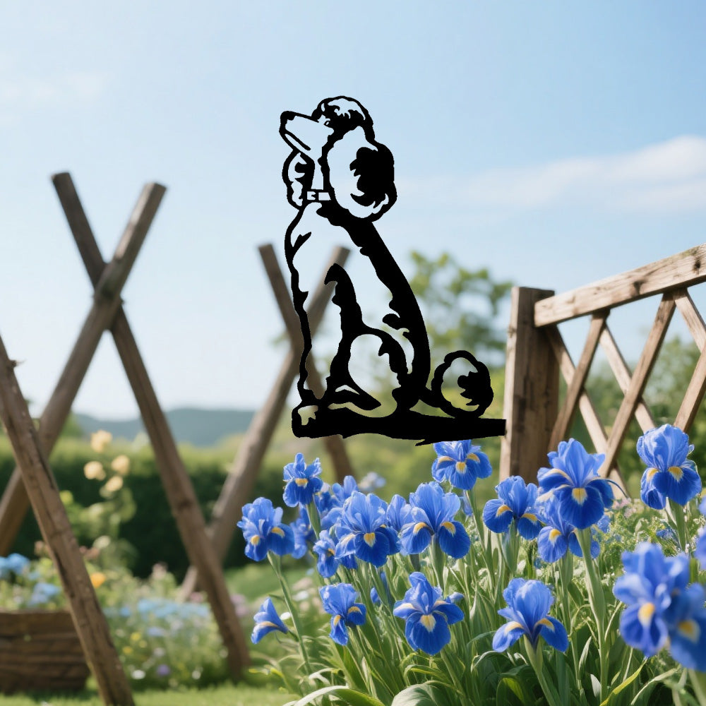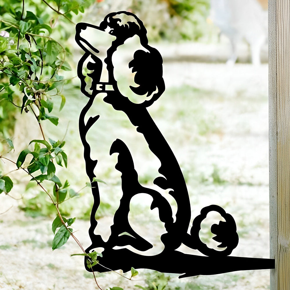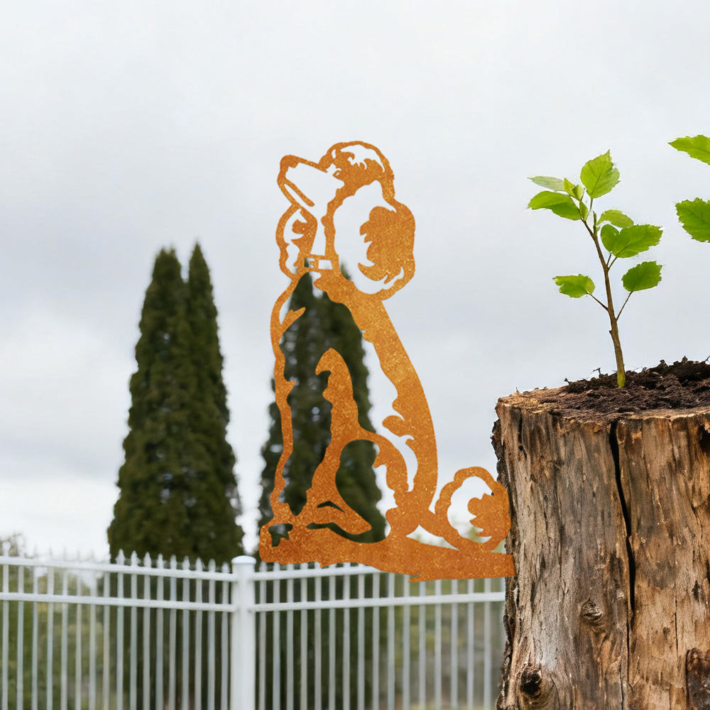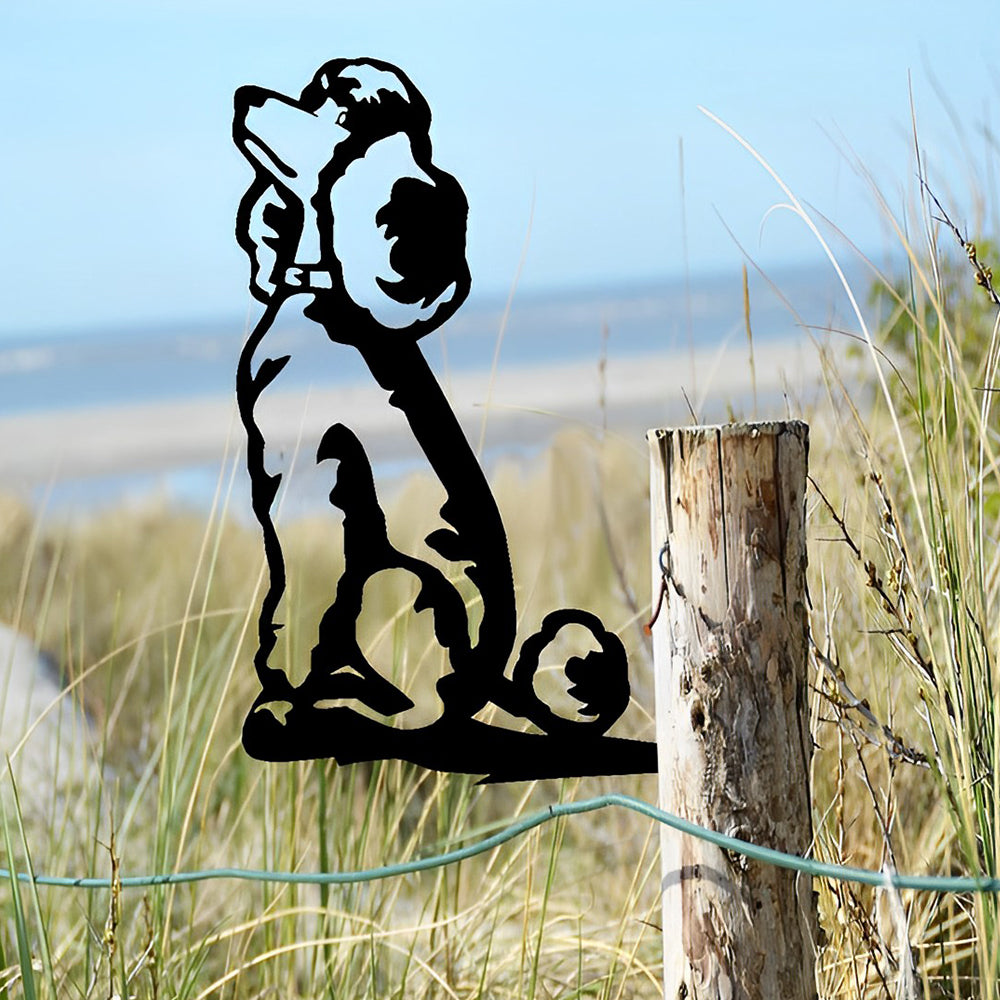 Hochwertige Metallkunst mit Tiersilhouette, die Ihrem Garten ganz einfach eine fröhliche Atmosphäre verleiht.