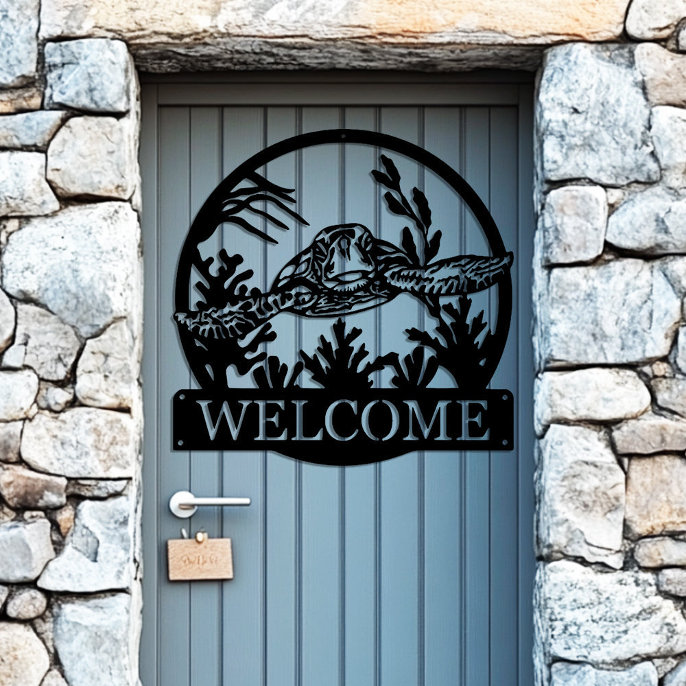 Schildkröte Willkommensschild aus Metall Wandkunst Dekoration