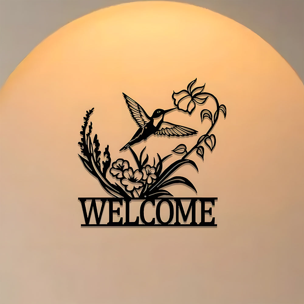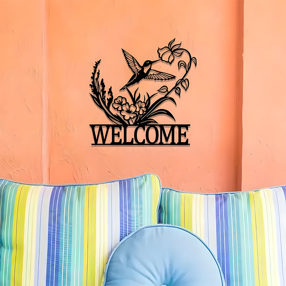 Schmetterling und Kolibri Willkommensschild aus Metall Wandkunst Dekoration