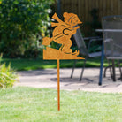 Hochwertige Metallkunst mit Tiersilhouette, die Ihrem Garten ganz einfach eine fröhliche Atmosphäre verleiht.